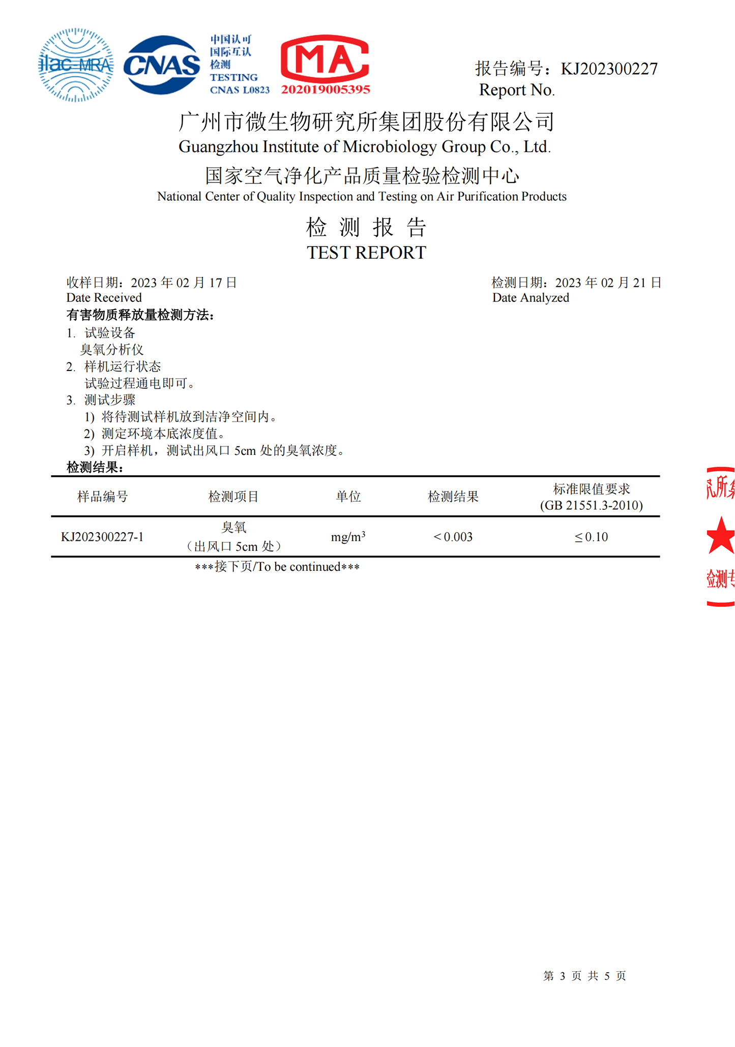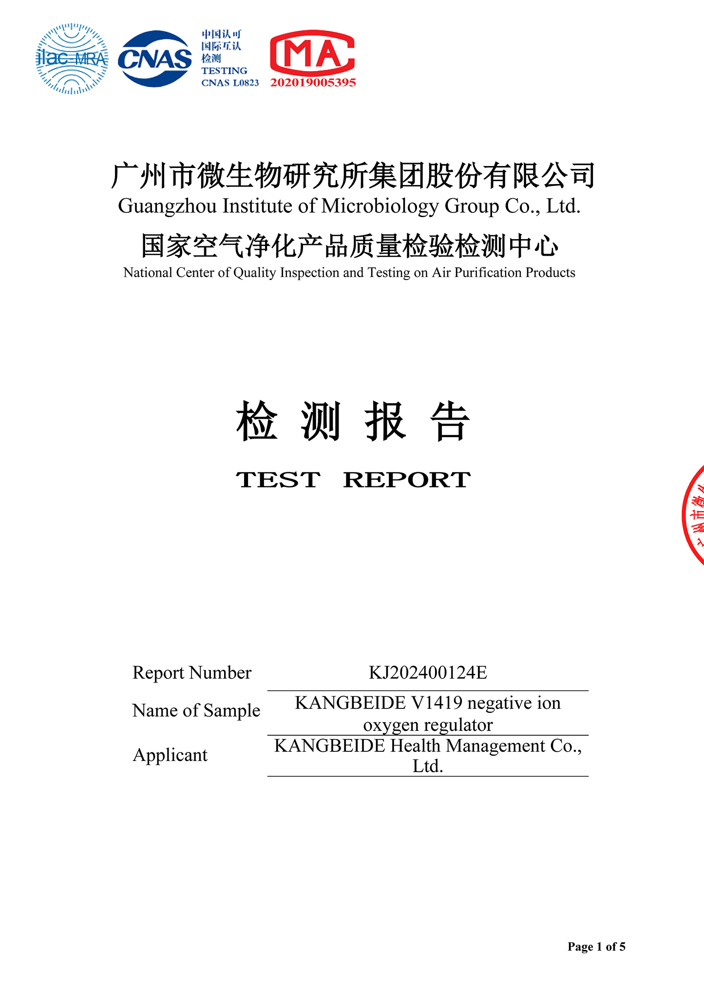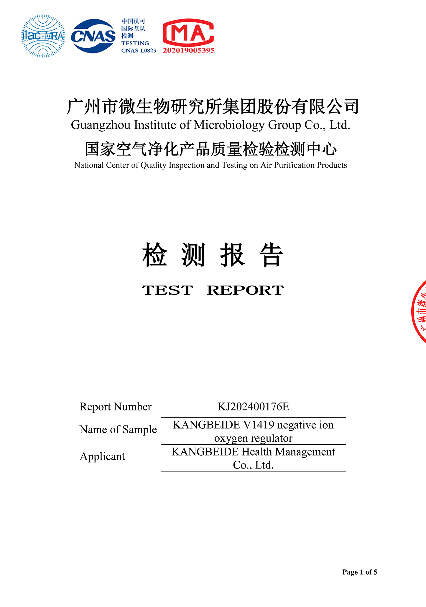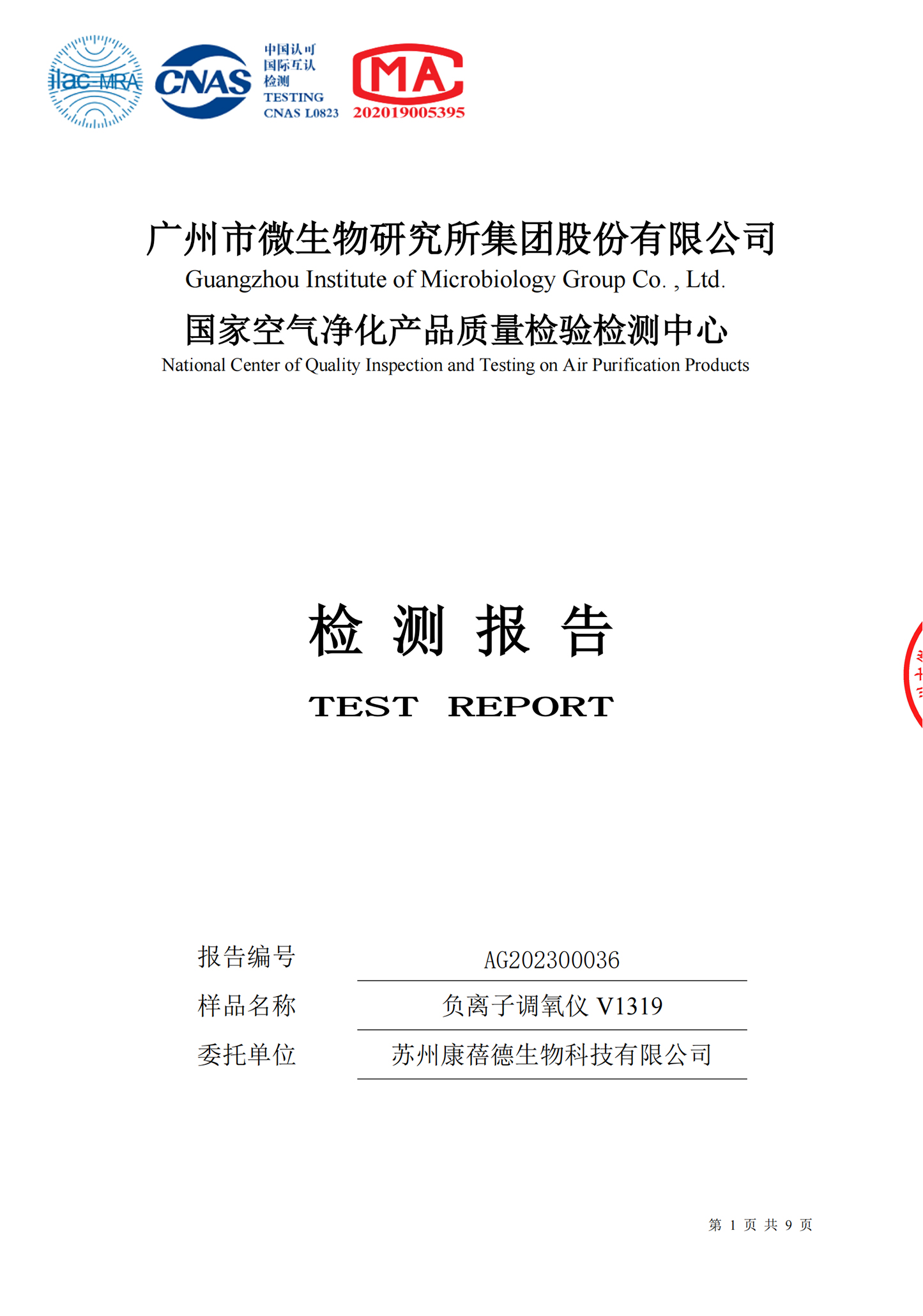 国家空气净化产品质量检验中心权威认证