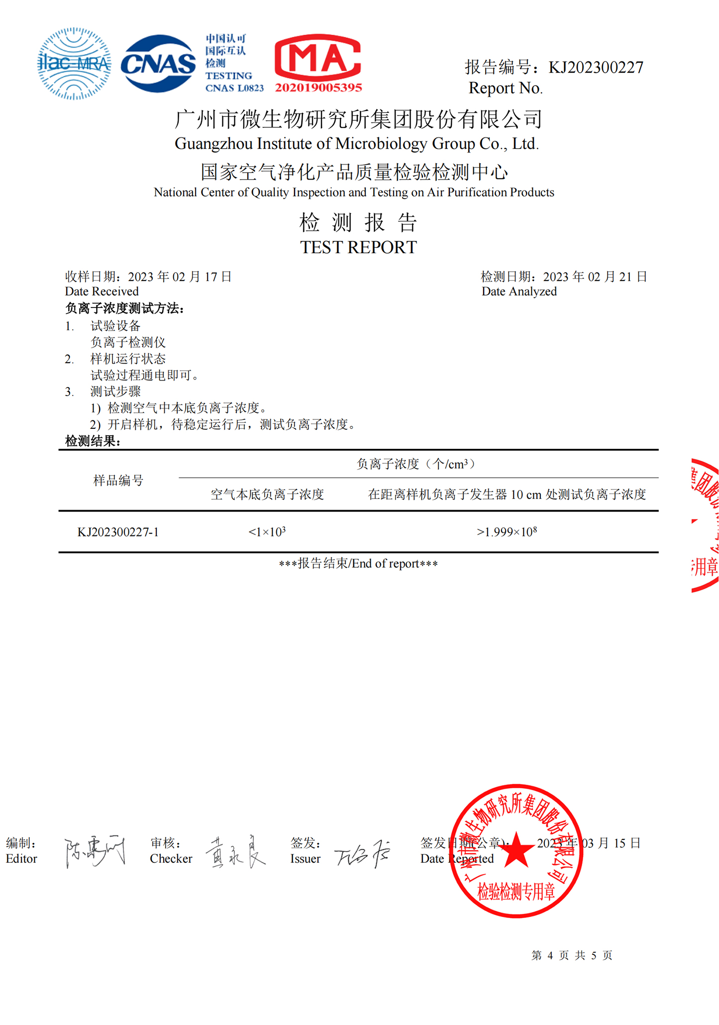 国家空气净化产品质量检验中心权威认证。
